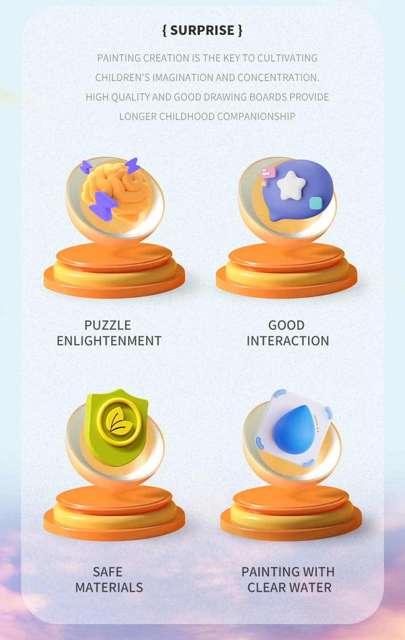 - Mess-Free & Reusable: No ink, no paint, just water!
